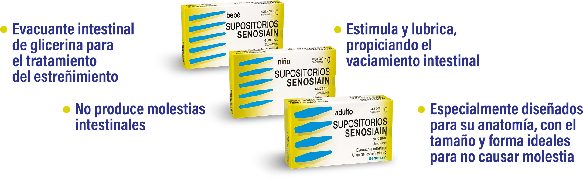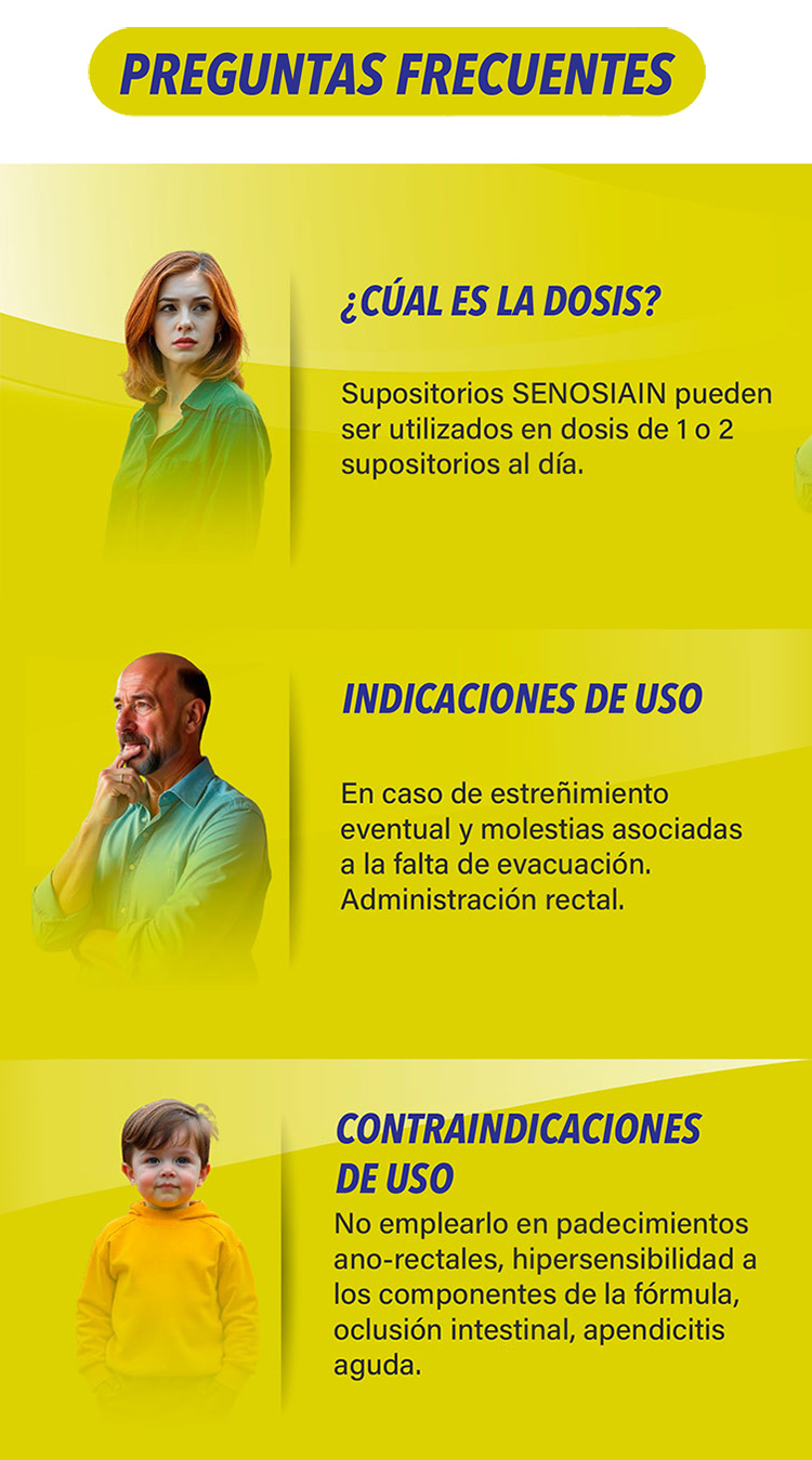 SUPOSITORIOS SENOSIAIN, recomendados por los doctores durante más de 70 años, ofrecen un alivio rápido, eficaz y seguro para el estreñimiento ocasional en adultos, niños y bebés, brindando seguridad y confianza a las familias mexicanas, hoy y siempre.